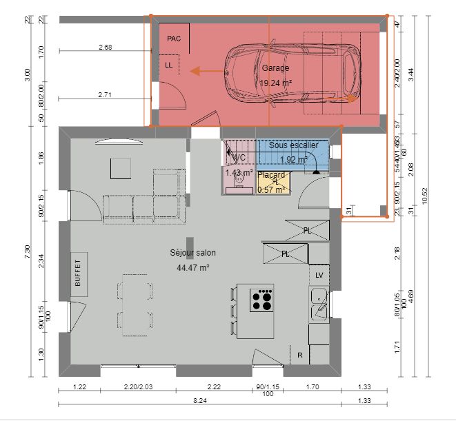 •   Garage : 19 m2