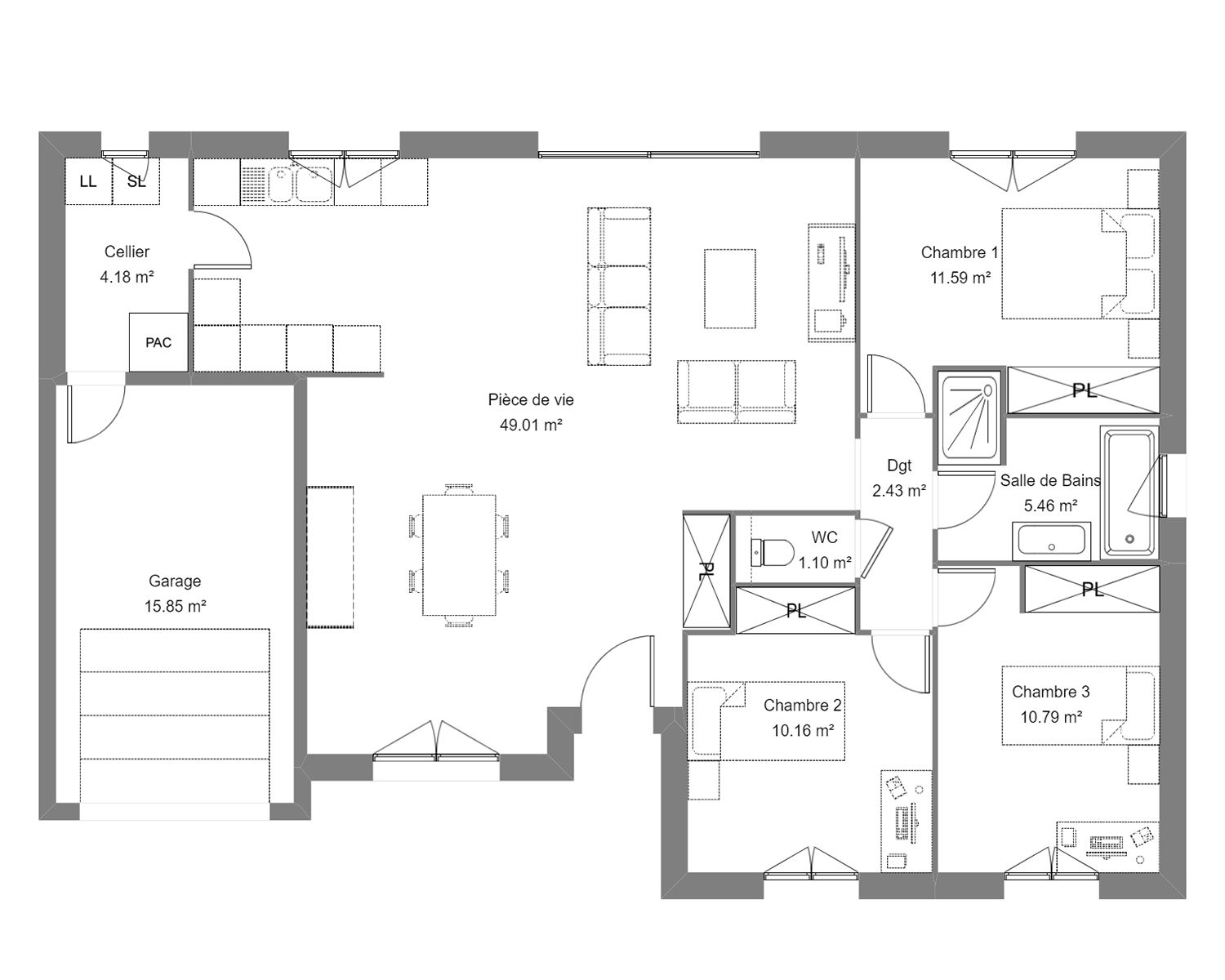 Projet de construction d'une maison 94.91 m² avec terrain à HEDE (35)